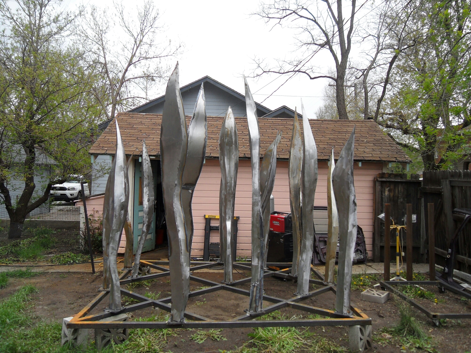 Public sculpture project March 18, 2015April 8, 2017Leave a comment Building these blades of grass for Colorado Springs, Colorado. Going to be 9 feet tall
