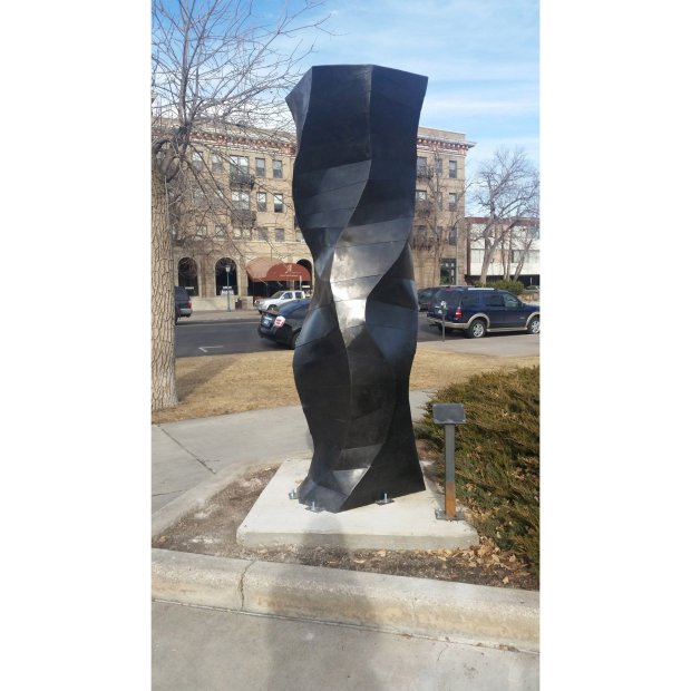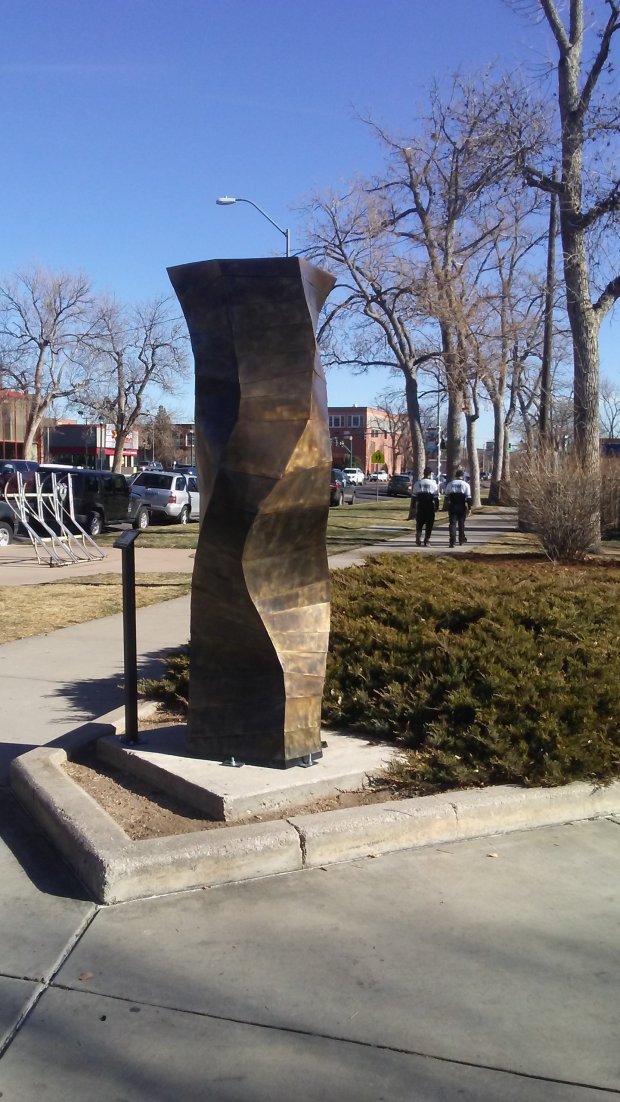 Commence (currently in Acacia Park, Colorado Springs, Colorado) January 16, 2016December 26, 2017Leave a comment Steel sculpture 7 feet 10 inches tall. Patina in black and clear coated. The top picture of Commence is the way it looks now after the patina got to shade I wanted. Bottom is when I first installed the sculpture in January of 2016.