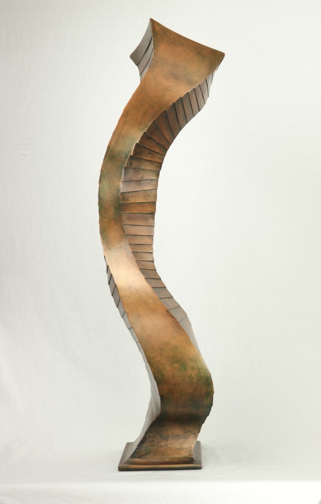 Cubist Tornado 2017, Steel, copper resin paint, patina, and metal wax, 44” h x 13” w x 13” d; SOLDShare this: Click to share on X (Opens in new window) X Click to share on Facebook (Opens in new window) Facebook Like Loading...