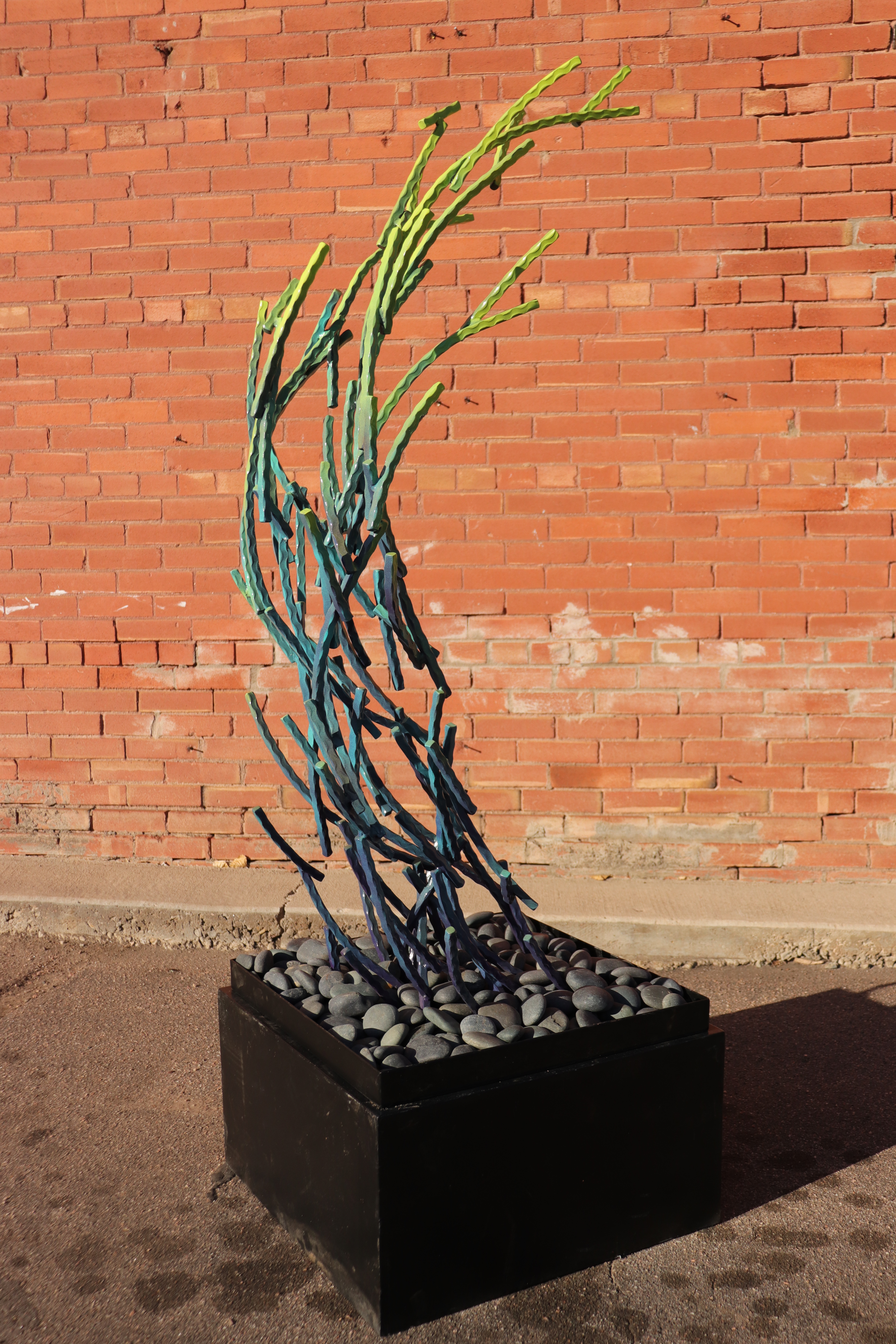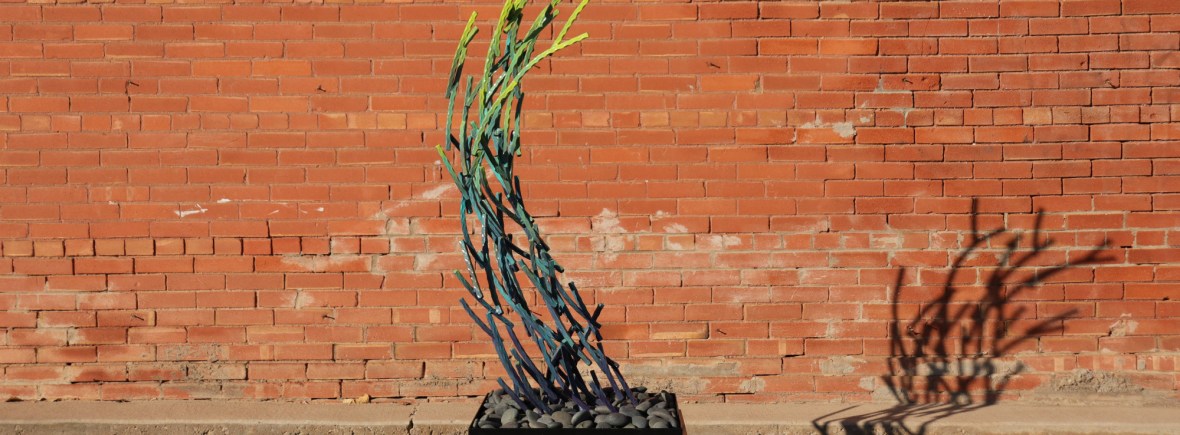Wave 2018, Steel with enamel paint, 57″ H x 28″ W x 24″ D, resting on 22″x22″ steel base with Mexican river rocks. Sold Share this: Click to share on X (Opens in new window) X Click to share on Facebook (Opens in new window) Facebook Like Loading...